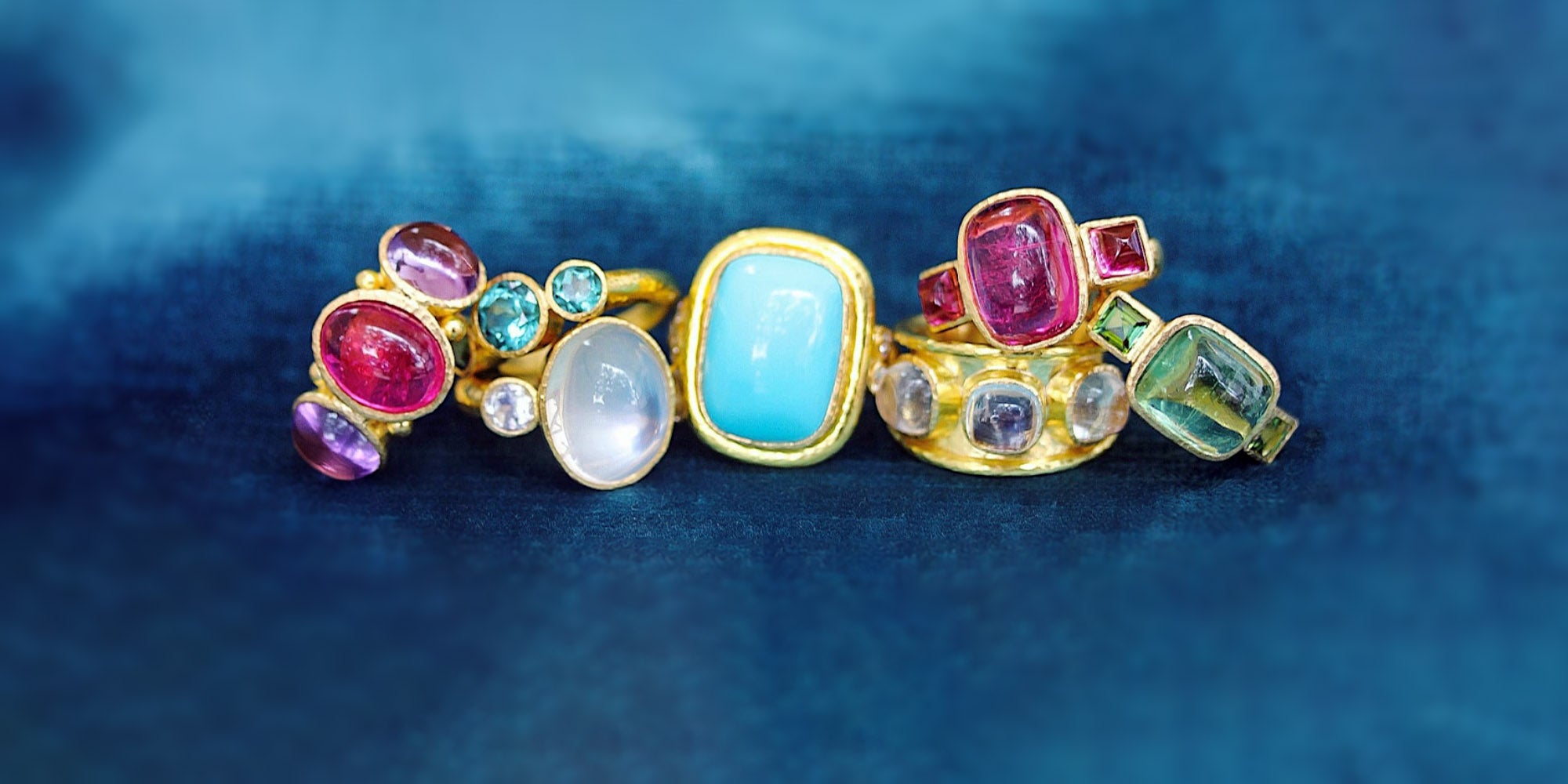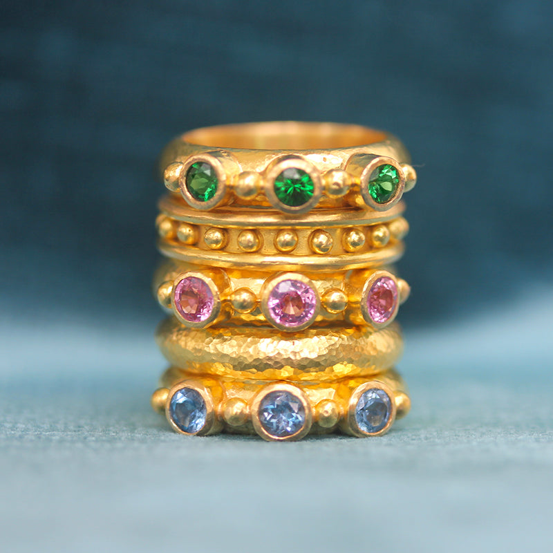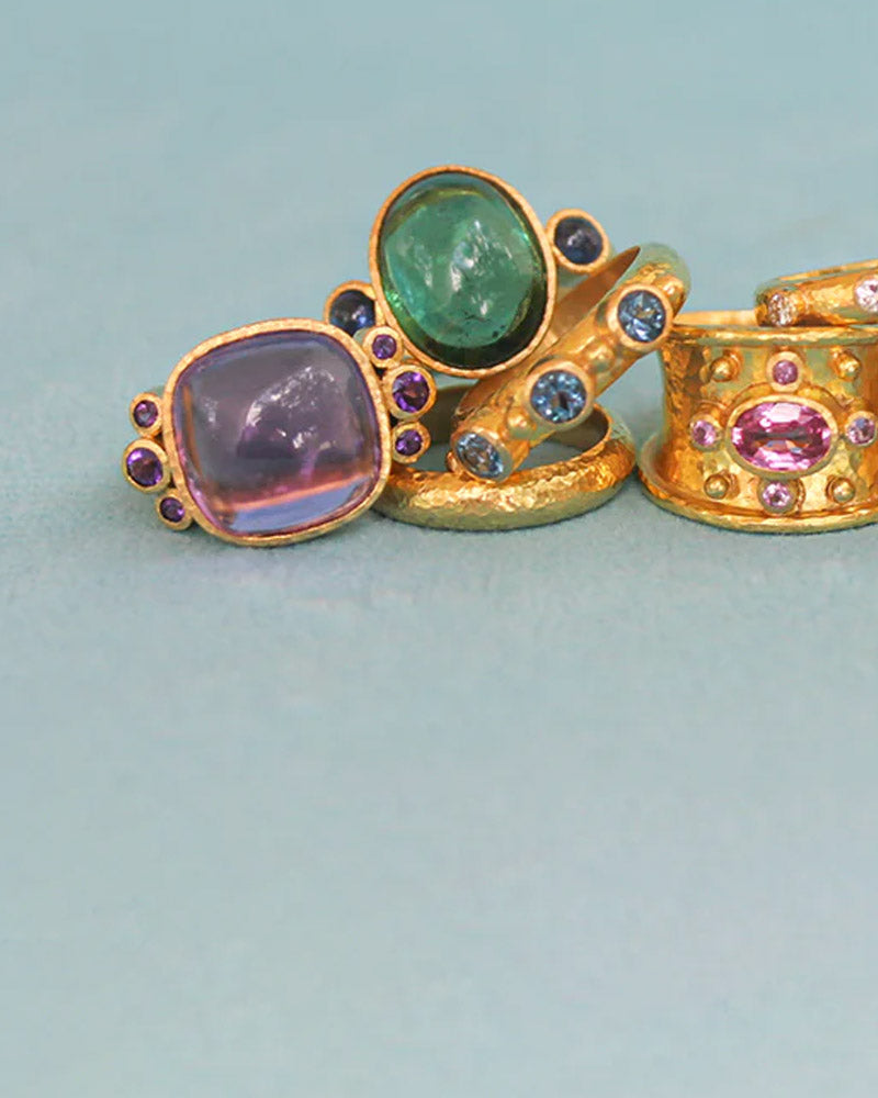 Rings built around antique intaglios, ancient coins, and micromosaics. Each are set in Elizabeth Locke’s signature hand-hammered 19k gold.