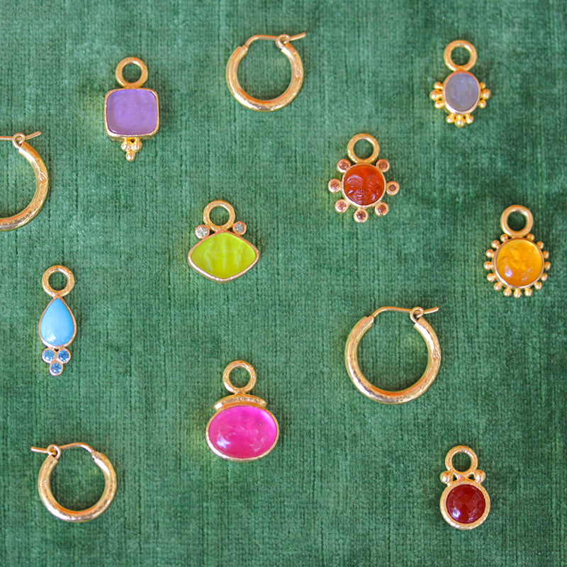Visit our Style Guide to view common questions and additional details on Venetian Glass Intaglio colors, sizing options, and custom orders. Compare sizing for hoop earrings and more.